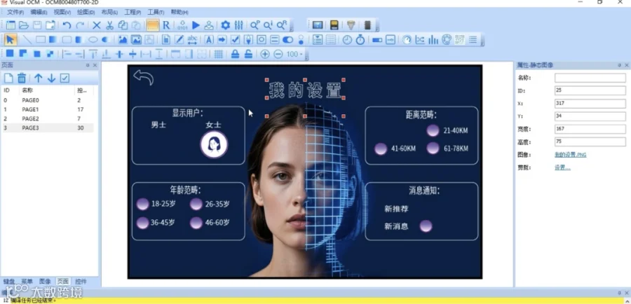 在距离范畴和年龄范畴中的按钮我们可以改为赋值按钮,并加入参数显示按钮控件,注意我们根据写入的数据不同要用不同的寄存器如果你要写入文字,使用文本寄存器,写入数字,则整数型寄存器。