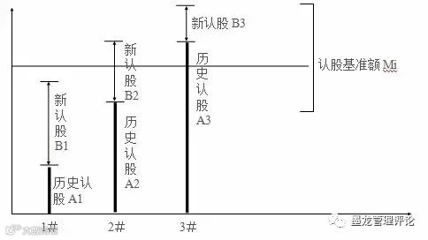 假设1#、2#、3#的三位员工当年评定等级都为Pi,其历史认股额分别为A1、A2、A3,则允许新认股分别为B1、B2、B3,如下图:
