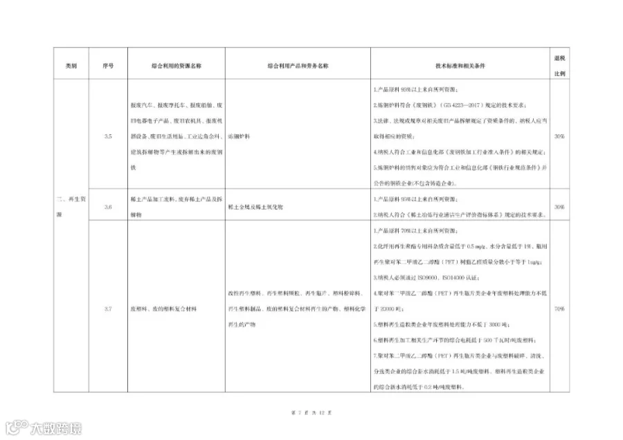 (一)综合利用的资源名称、综合利用产品和劳务名称、技术标准和相关条件、退税比例等按照本公告所附《资源综合利用产品和劳务增值税优惠目录(2022年版)》)(以下称《目录》)的相关规定执行。
