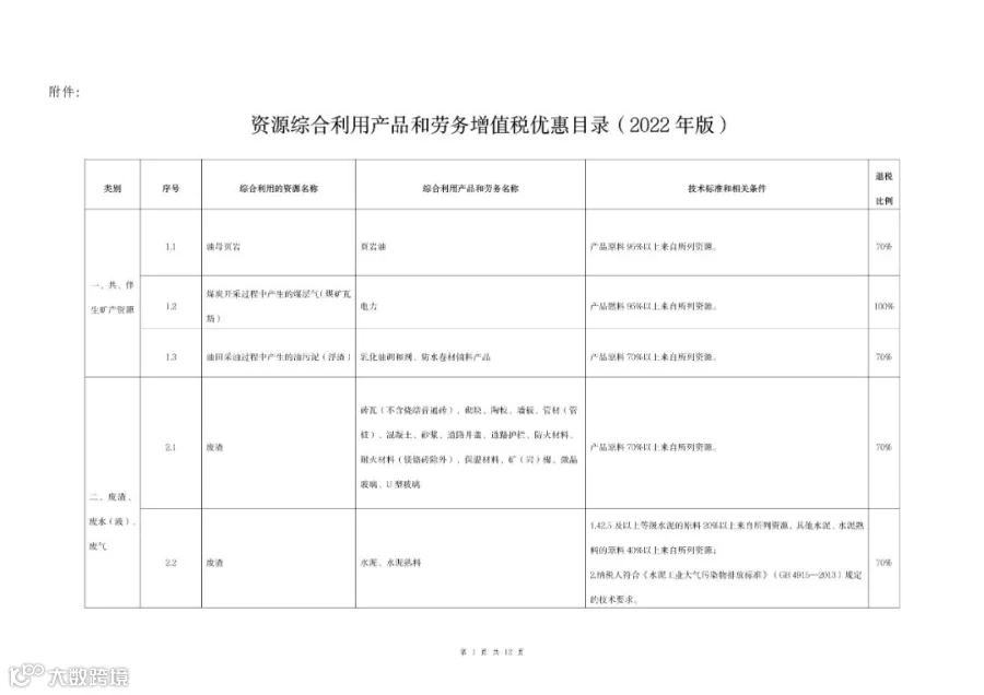 附件:资源综合利用产品和劳务增值税优惠目录(2022年版)