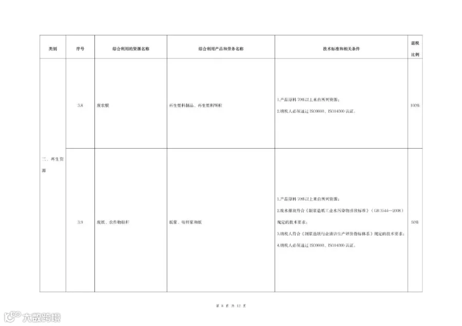 (一)本公告所称再生资源,是指在社会生产和生活消费过程中产生的,已经失去原有全部或部分使用价值,经过回收、加工处理,能够使其重新获得使用价值的各种废弃物。其中,加工处理仅限于清洗、挑选、破碎、切割、拆解、打包等改变再生资源密度、湿度、长度、粗细、软硬等物理性状的简单加工。