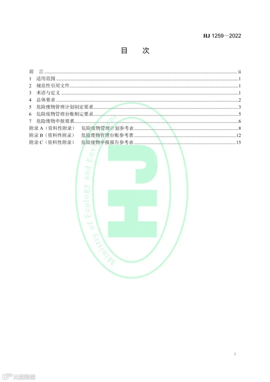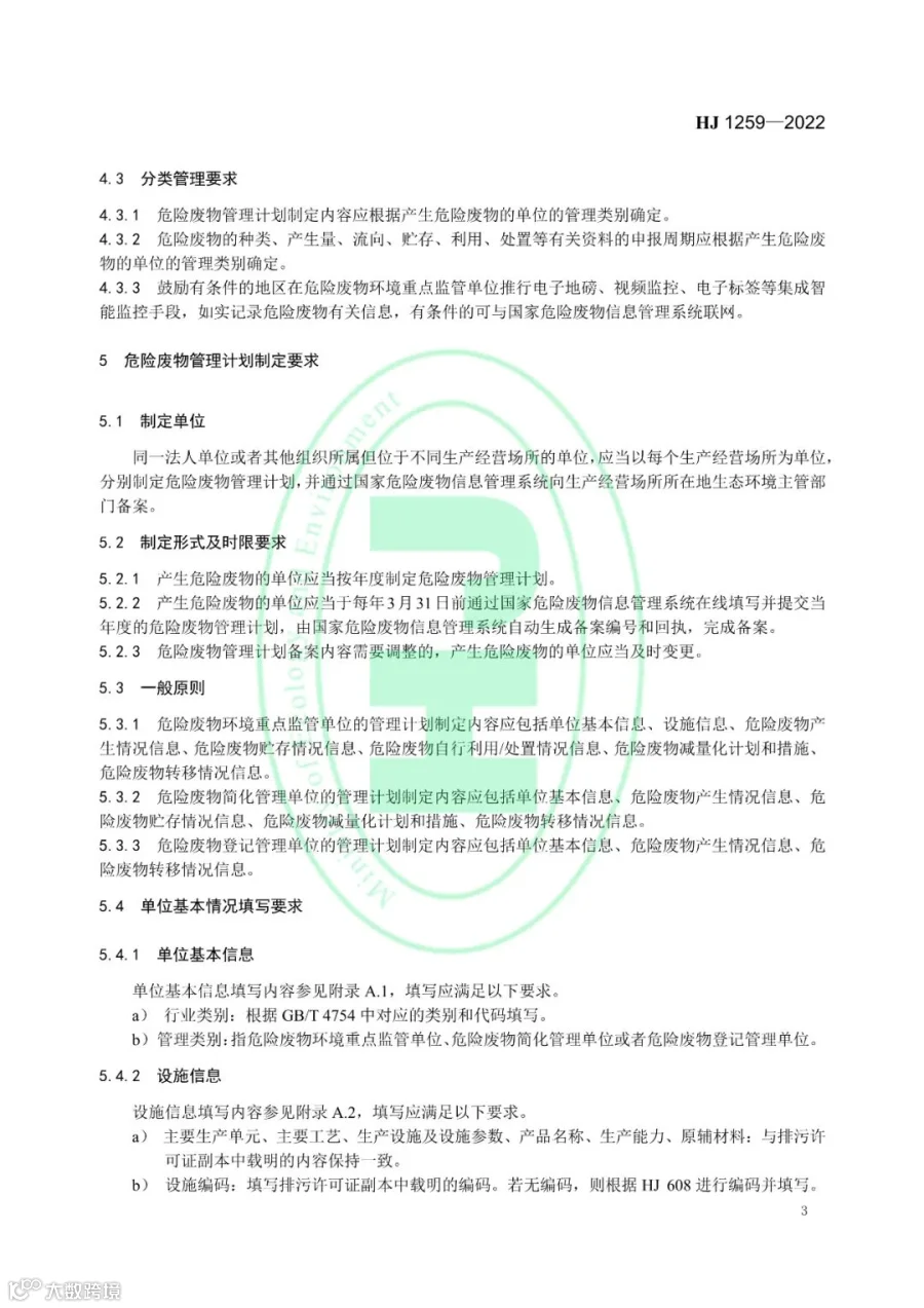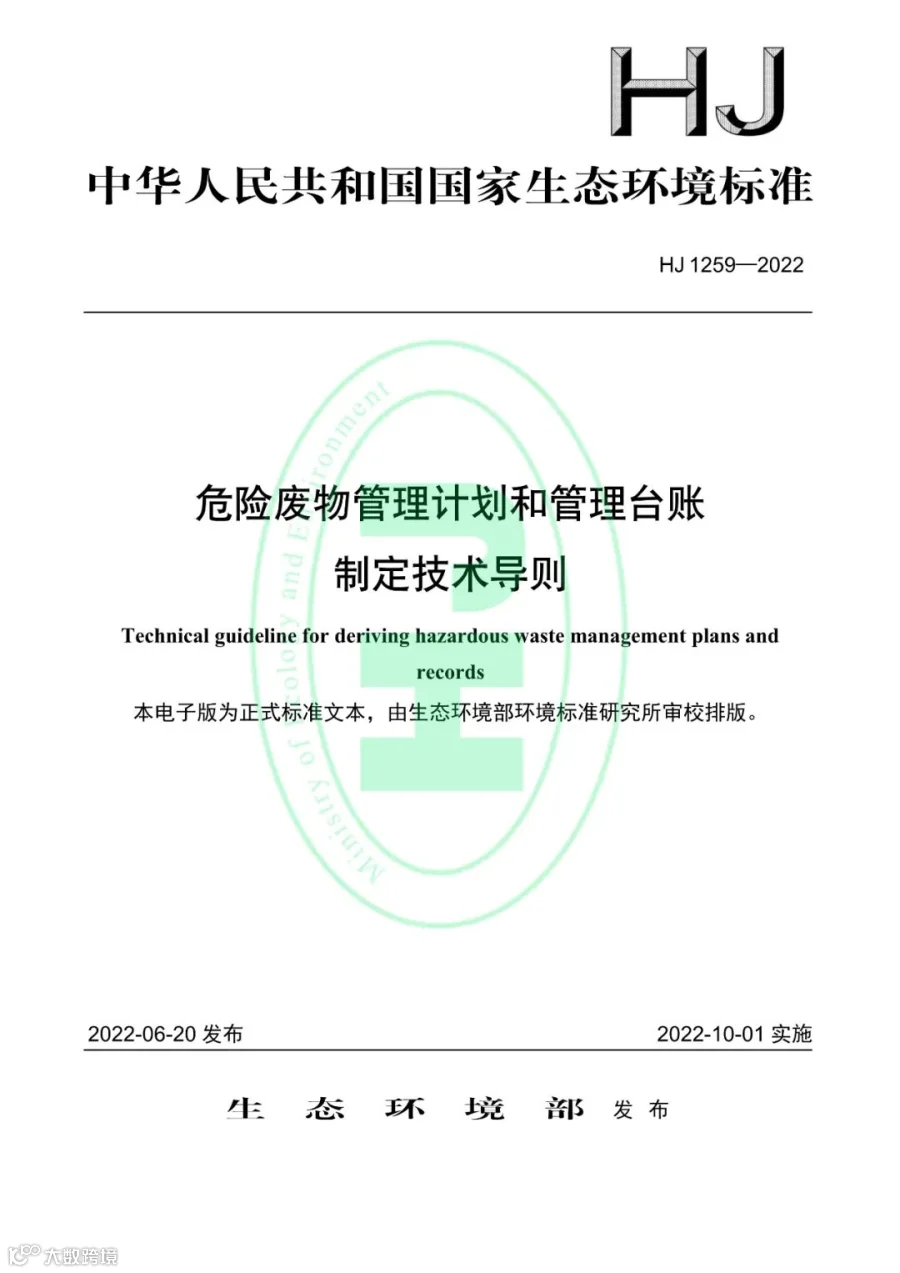 《危险废物管理计划和管理台账制定技术导则》(HJ 1259-2022)