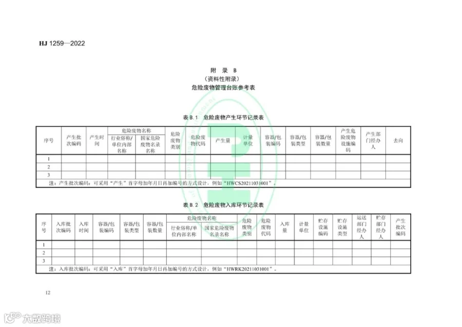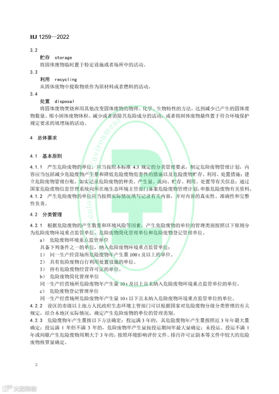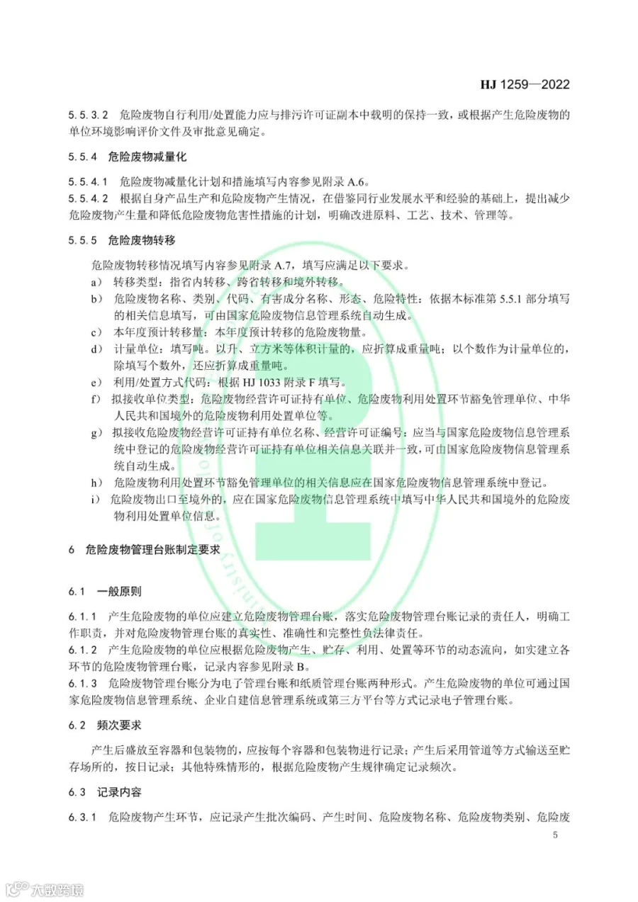 《危险废物管理计划和管理台账制定技术导则》(HJ 1259-2022)
