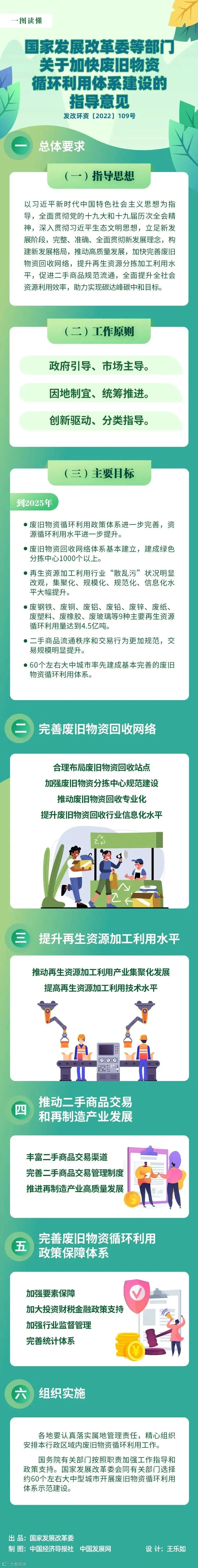 建立健全废旧物资循环利用体系,对提高资源循环利用水平、提升资源安全保障能力、促进绿色低碳循环发展、助力实现碳达峰碳中和具有重要意义。为贯彻落实党的十九届五中全会精神和国家“十四五”规划《纲要》及《“十四五”循环经济发展规划》有关要求,加快废旧物资循环利用体系建设,提出如下意见。