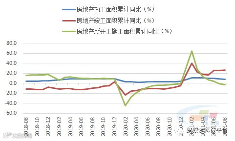 图9:2018.8-2021.8全国房地产施工情况(%)