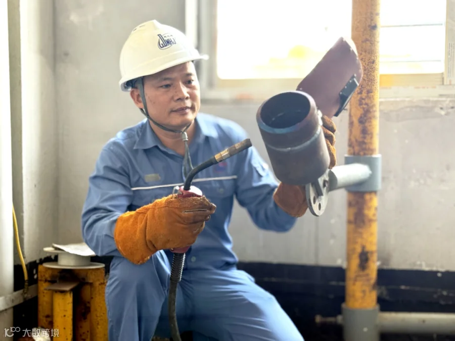 杜广华正在进行管对接6G气保焊焊接