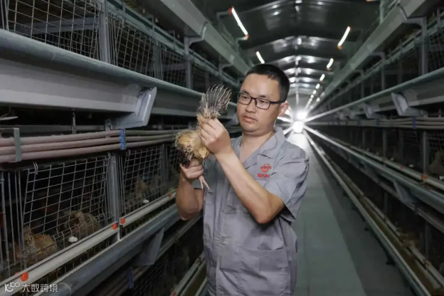 刘松柏正在鸡舍查看幼鸡身体情况