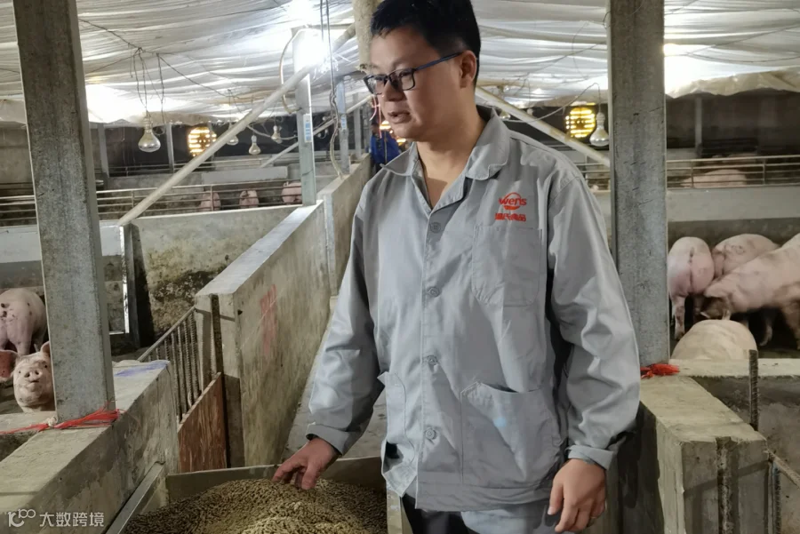 谭会泽在在合作农户处调研肉猪饲喂情况