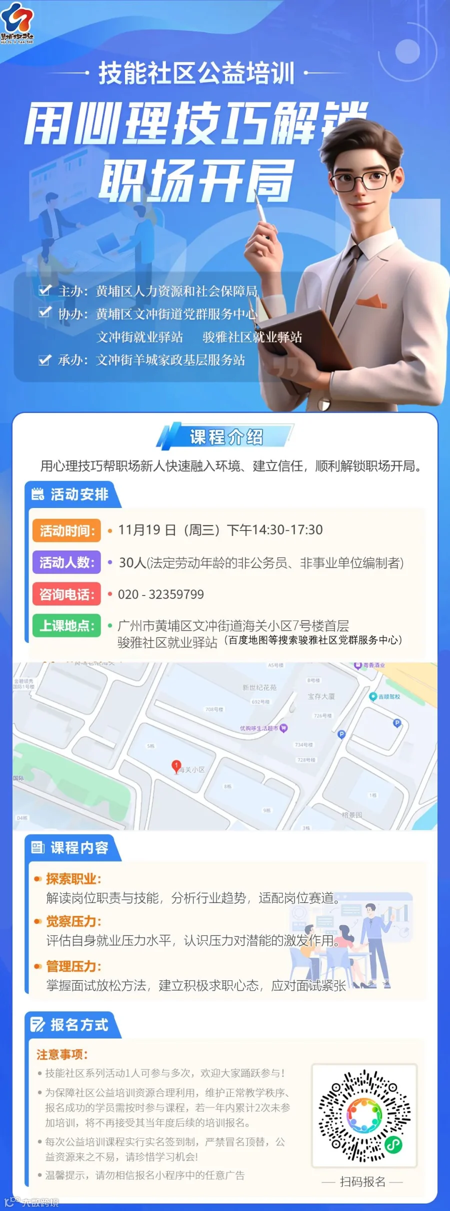 ▲上下滑动,查看黄埔区职业技能公益培训2025年11月开班计划表,培训安排最终以实际开展为准