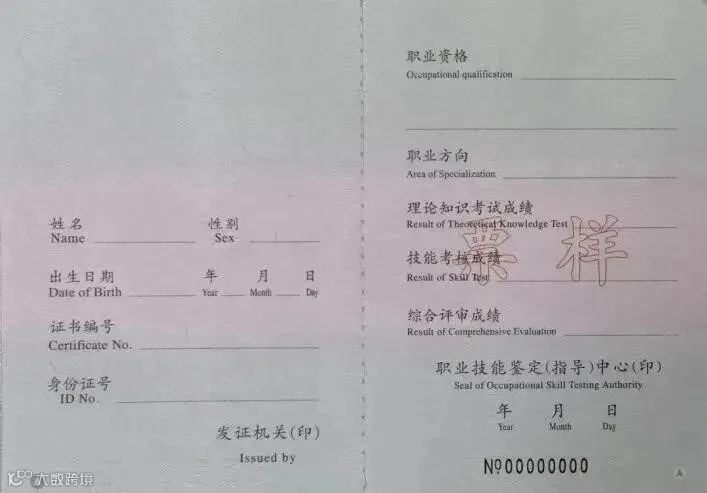 正规的技能人员职业资格证书样式