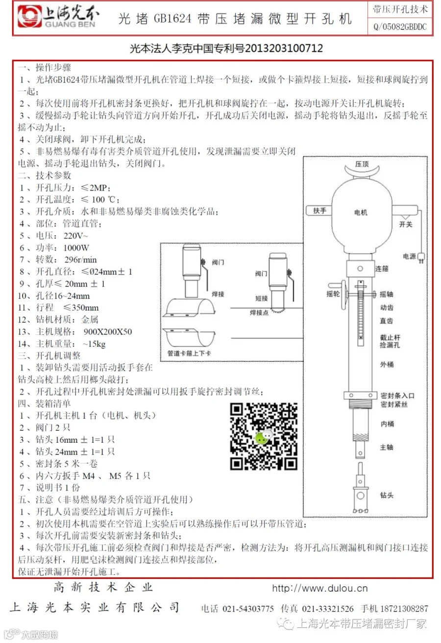 上海光本是合法的生产加工型企业,进入光本官网www.dulou.cn点击网站下方工商局徽标进入工商局电子执照,经营范围里有“加工”两字是生产制造型企业, 光本牌、光堵牌为中石油中石化中海油带压堵漏抢险保运装备指定供应商。