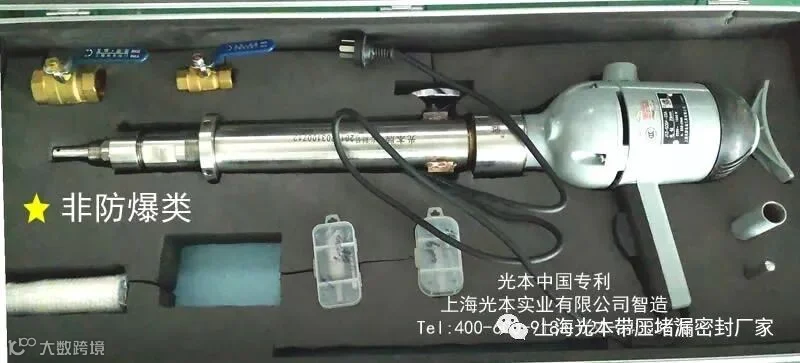如何在管网不停输不动火快速安全带压开微小孔,带压过程中直接安全安装传感器仪表热电偶等附件呢?用专利2013203100712号上海光本制造的光堵GB1624带压堵漏微型开孔机可快速解决。