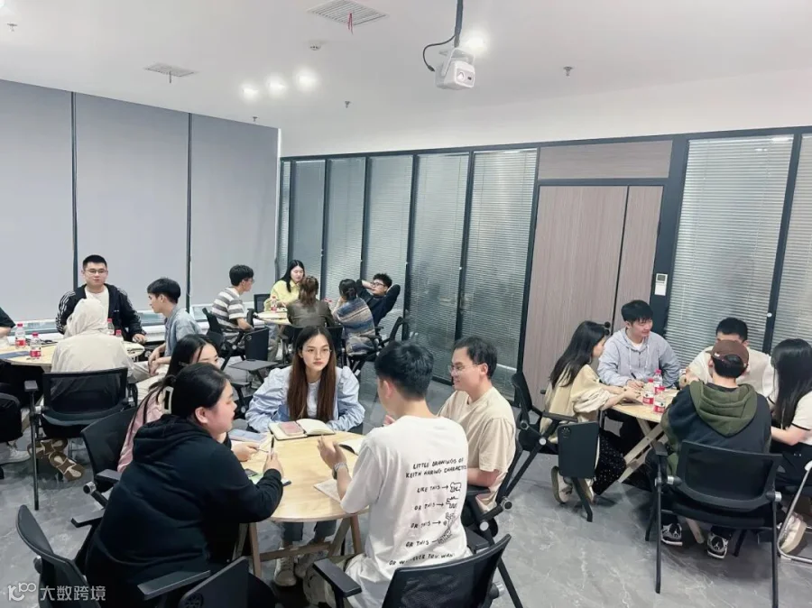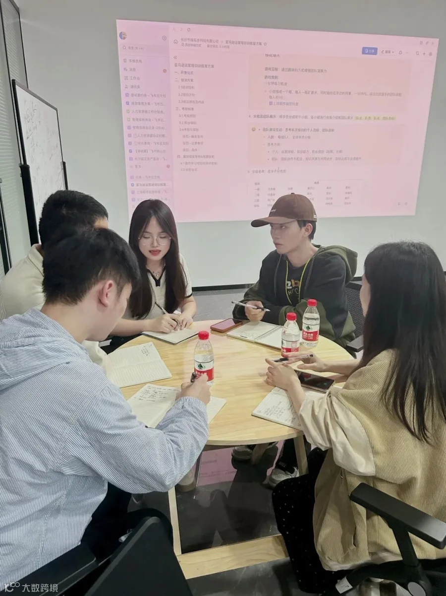 全体学员被分成四个小组,开始了团队目标和个人目标的拟定环节。每个小组聚集在一起,围绕着桌子,展开热烈的讨论。