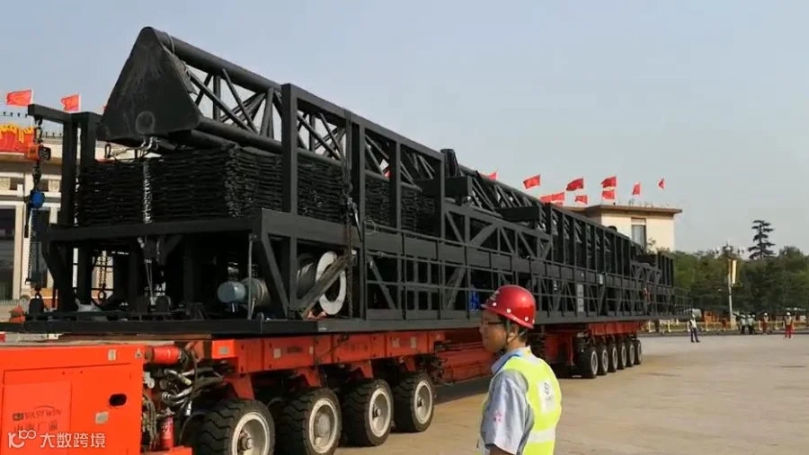 中海广瀛在中远海运工程物流各级公司领导的支持下,荣誉承接国庆70周年庆祝活动焰火树和网幕等大型设施的运输保障任务。