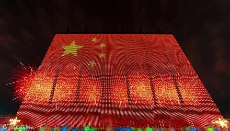 联欢活动高潮阶段,一面巨大无比的“五星红旗”冉冉升起,瞬间吸引了广场所有人的目光。