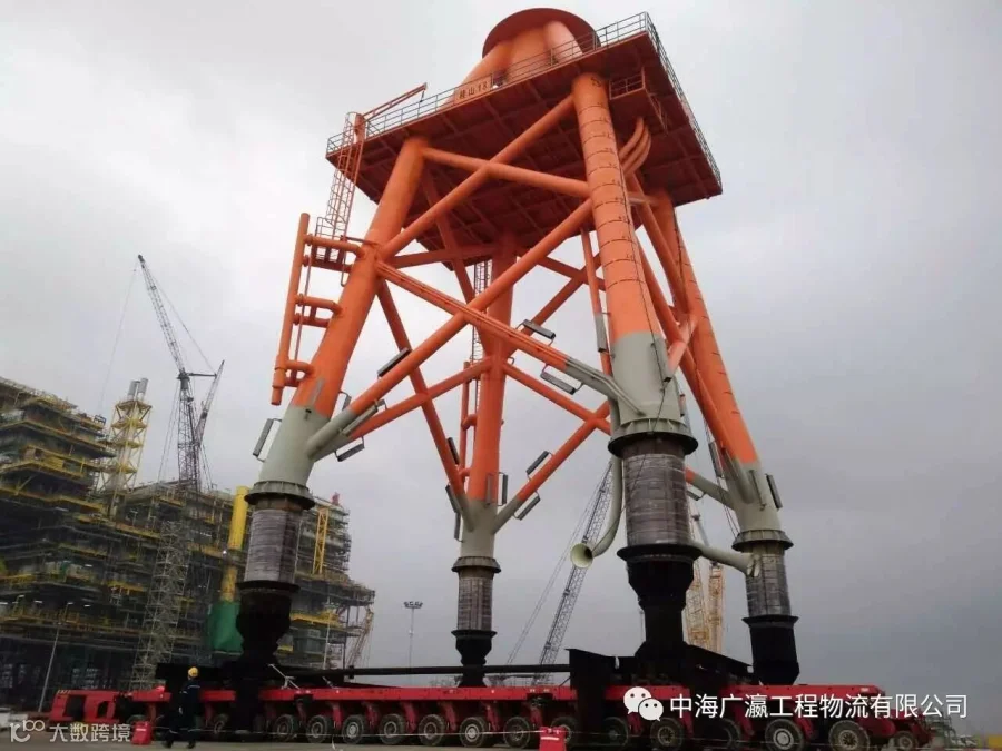 持续时间:2017年2月—2017年3月,导管架从制造场地平移至码头前沿,并滚装上船后海运至导管架海上安装地点。