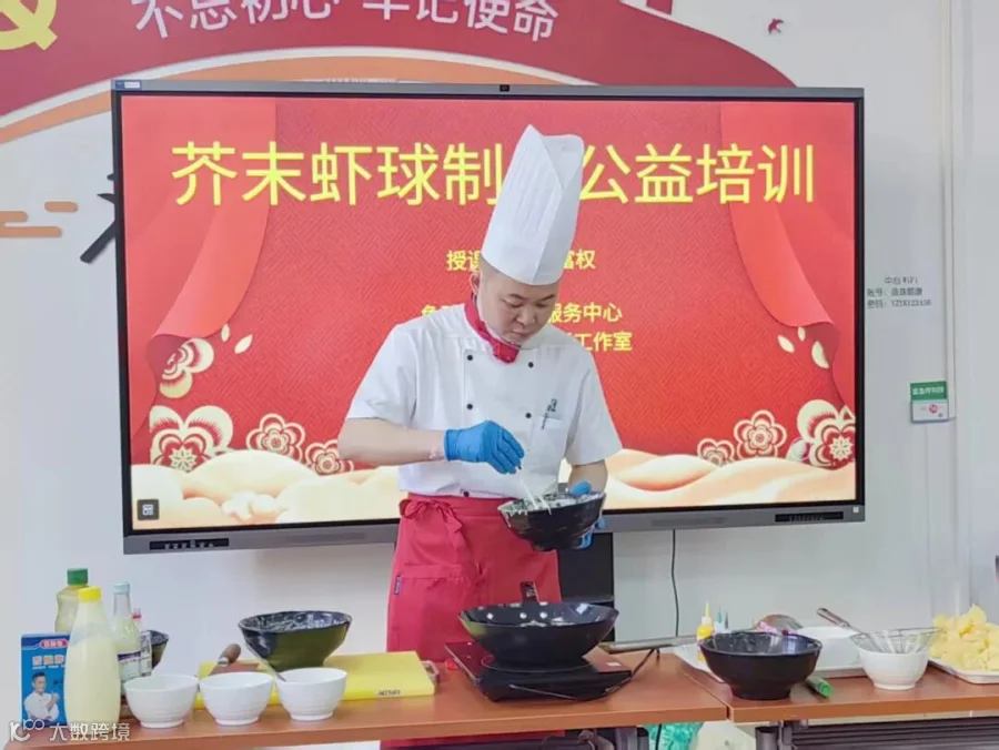 此次“芥末虾球”制作培训是黄埔区“黄埔工匠”、技能大师进校园、进社区系列公益活动之一,旨在通过“黄埔工匠”、技能大师带头展示技能、推广技能、分享技能,让社区居民感受技能魅力、激发学技兴趣。