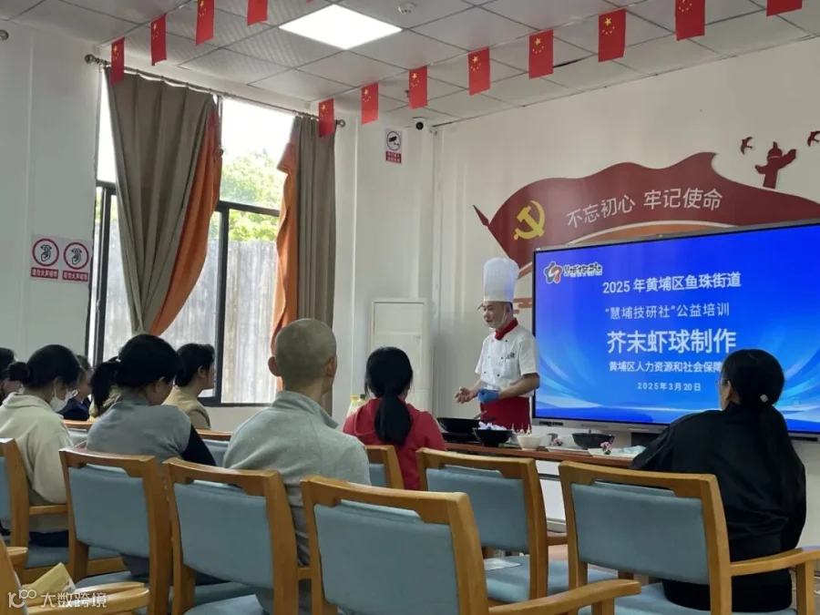3月20日,为提高社区居民烹饪技能,推广健康饮食理念,响应“体重管理年”号召,黄埔区鱼珠街道莺岗社区开展“慧埔技研社”春日主题烹饪公益培训,特邀达康膳食服务创新工作室的“带头大师”袁富权师傅现场教授低脂高蛋白创意菜芥末虾球的制作技巧,吸引50余名居民报名参与。
