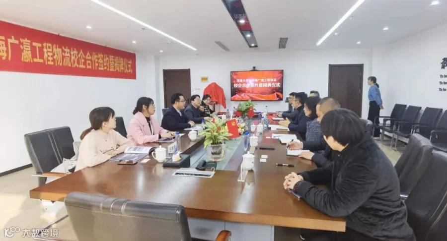 2022年1月11日下午,河海大学与中海广瀛工程物流有限公司校企合作签约暨揭牌仪式在中海广瀛会议室举行,参与此次签约仪式的校方领导有河海大学商学院副院长田贵良,管理工程系主任杨高升,工程硕士中心主任朱旭,创新创业中心学术主任吕苏榆以及创新创业中心副主任王晓莹。