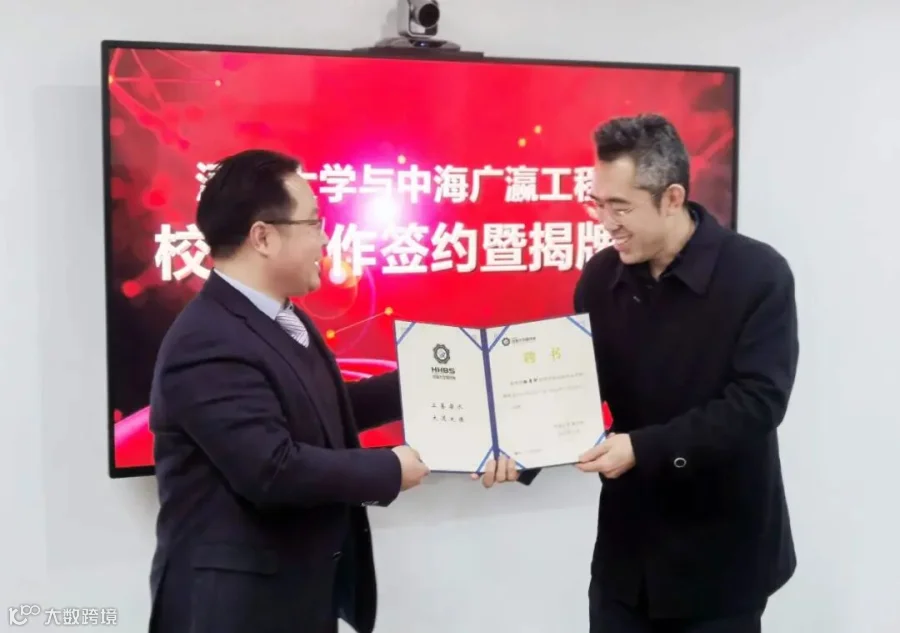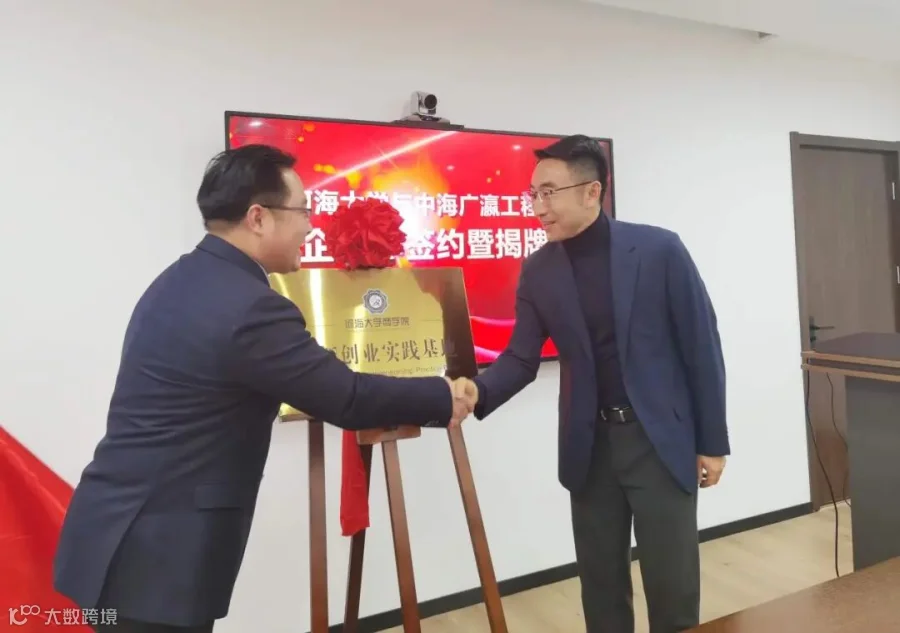 双方领导在交流中达成共识,推动校企合作、工学结合,既符合学院发展要求,也符合企业需要。随后,校企双方签署了校企合作协议,校方授聘我司副总经理滕景轲为河海大学创新创业导师,并完成了“创新创业实践基地”签约揭牌仪式,谱写了中海广瀛与河海大学商学院合作的新篇章。