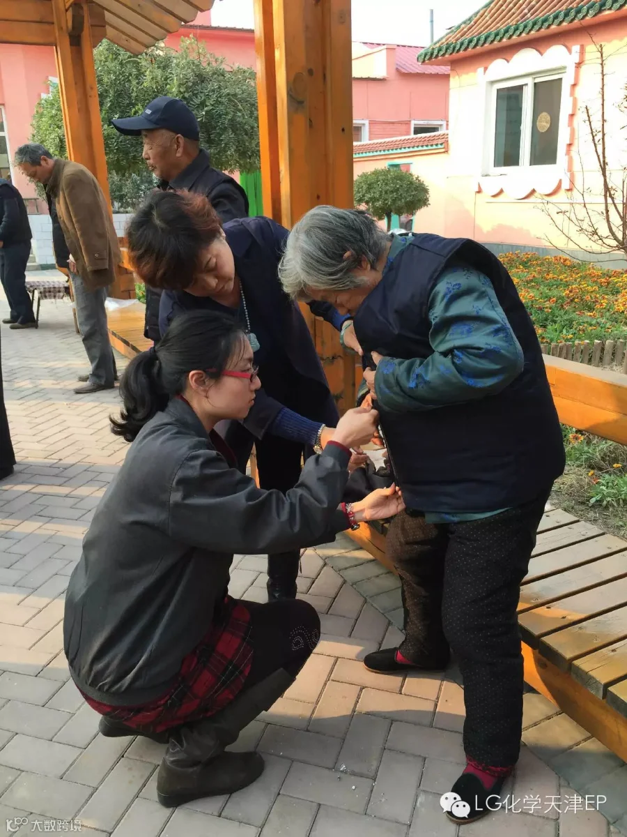 2015年11月4日,LGCC TJ总务部门,带着厚马甲,慰问了石各庄敬老院。进入十一月,天气转冷,尤其是老人们需要添加厚衣物,防寒。公司提前与敬老院的工作人员联系,特意定制了适合老人们的厚马甲。虽然只是一件小小的马甲,但是这份大大的温暖如春日阳光般照进了每位老人的心里。真真切切,实实在在的让老人们感受到我司给予的关爱。当然,不仅是我司,相信会有更多的社会爱心集体,去关爱、关心敬老院。敬老院的一些老人们,身体不适,不能长时间站立,但听说我们来了,特别高兴,拄着拐杖,冷天也要出来欢迎,我相信这种是发自内心的开心。李享主管还帮助老人们试穿马甲,对待老人就像对待自己的家人一样,这一幕真是让人忘却了冬日里的寒冷。小小马甲,愿你把我们的祝福及温暖带到老人们身边,愿这个冬天,衣暖人心。