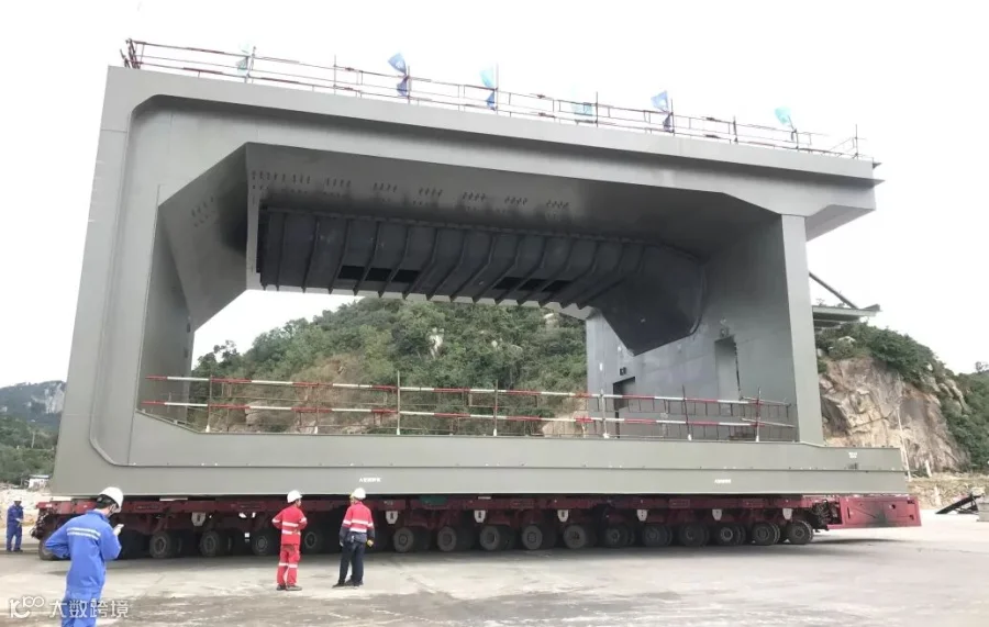 近日,我司完成了深中通道钢壳沉管隧道足尺寸模型运输项目,拉开了深中通道大型沉管隧道钢壳由工厂内制造完成、海陆联运、整体模块交付的序幕。