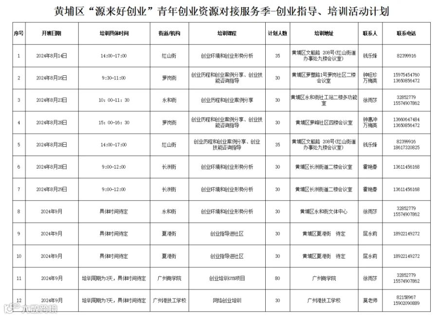 黄埔区“源来好创业”青年创业资源对接服务季——创业指导、培训活动通知