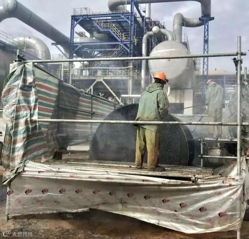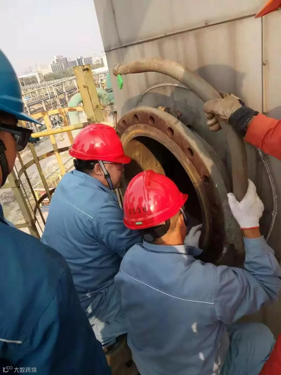 接下来要在高度不足0.5米的空间内完成清理工作,这可不是件容易事。可以想象一下就算是身材娇小的女同志在什么防护用品也没有穿戴的情况下,进入到塔内也只能俯卧,活动空间也是非常有限。而我们检修班组的男同志们先要爬上几十米高的塔,全副武装进入塔内在俯卧的情况下进行清洗作业,这其中的艰辛不言而喻。我们的检修人员经常是清理完塔盘出来后,身上的工作服已经看不出原来的颜色,脸上的汗水和着灰尘,重新给自己换上了一种肤色。即使条件这样艰苦也没有一个人退缩,都是抢着进入塔内检修,都想早点把同事换出来。就这样4个人孔同时开始作业火力全开,在48小时内保质保量的完成抢修任务,共计人工清理面积668㎡。