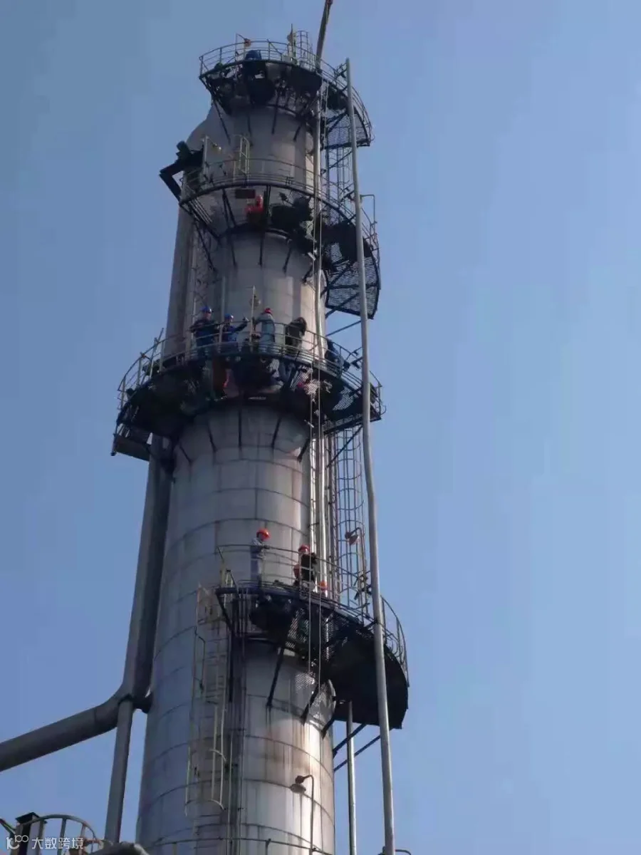 C710塔包含基座在内总高约42米,共有5个人孔、58层塔盘,塔盘间距不足0.5米,塔内介质为混合烃(属于易燃易爆物质)。这是一项时间紧、施工难度大、作业风险高的工作。