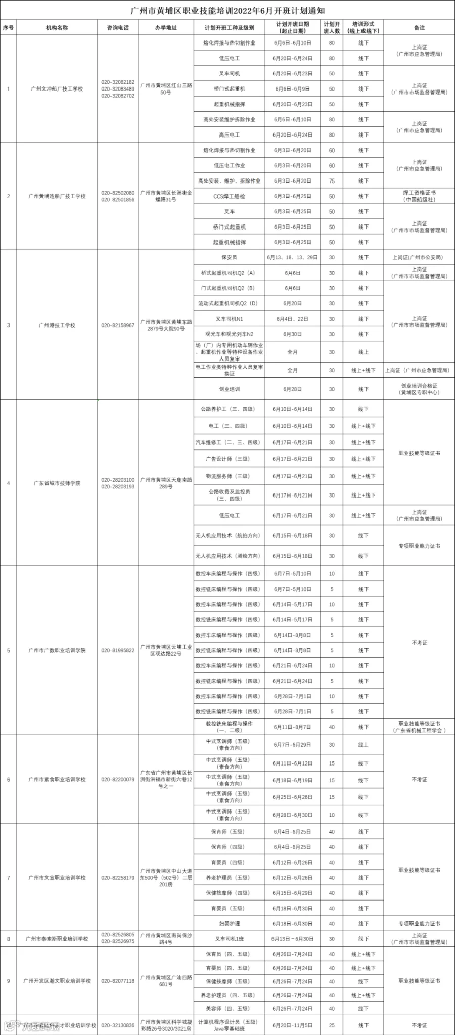 广州市黄埔区职业技能培训2022年6月开班计划通知