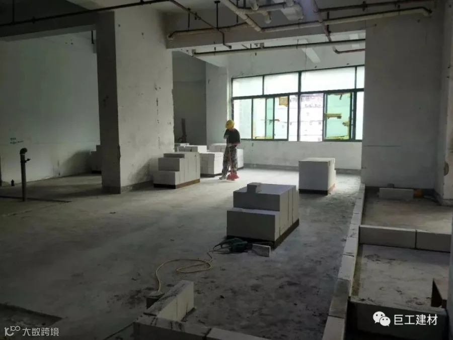 此次工程项目位于广州市海珠区的海悦大厦,是海悦公寓AAC高精砌块隔墙工程,项目面积约4500平方。采用薄抹灰施工方法,施工便捷,4月16进场,短短一个月时间,工程已接近尾声,现只剩收尾工作了。