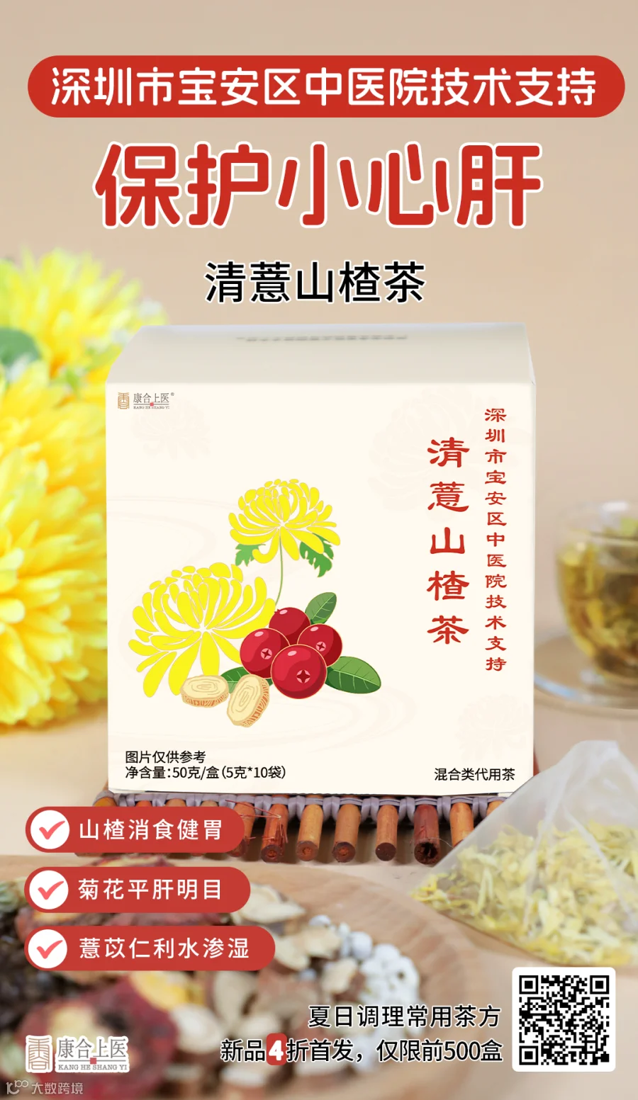 天气炎热,大家可以喝一喝深圳市宝安区中医院研发的【清薏山楂茶】,严选5味优质上等药材配伍:菊花、山楂、决明子、甘草、薏苡仁,不添加香精、人工色素、防腐剂生产,特别制作成独立茶包,每次1~2袋,使用便捷,热水冲泡即可饮用。