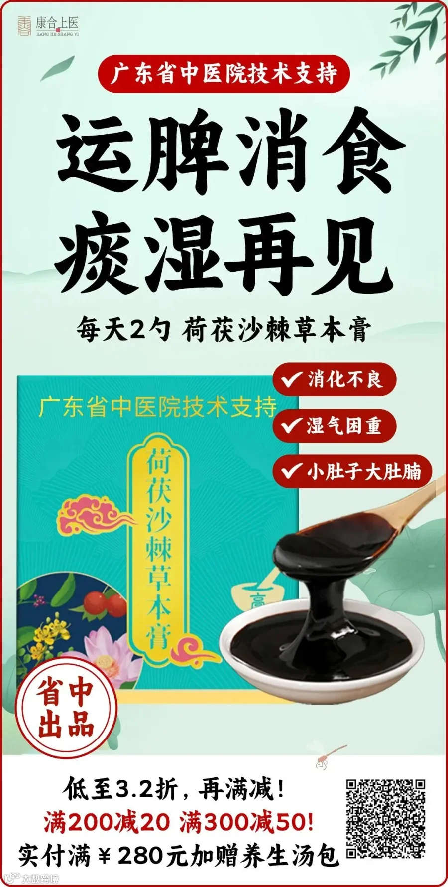现在开始大家也可以喝一喝广东省中医院技术支持研制的【荷茯沙棘膏】,严选13味药食同源的食材,针对岭南地区人群脾虚、湿气重、易上火的人群体质特点配伍熬制,24斤食材熬1斤膏,高倍精华浓缩,每一瓶膏都经过9道工序,72小时古法熬制而成,无论是品质还是效用都为上品。