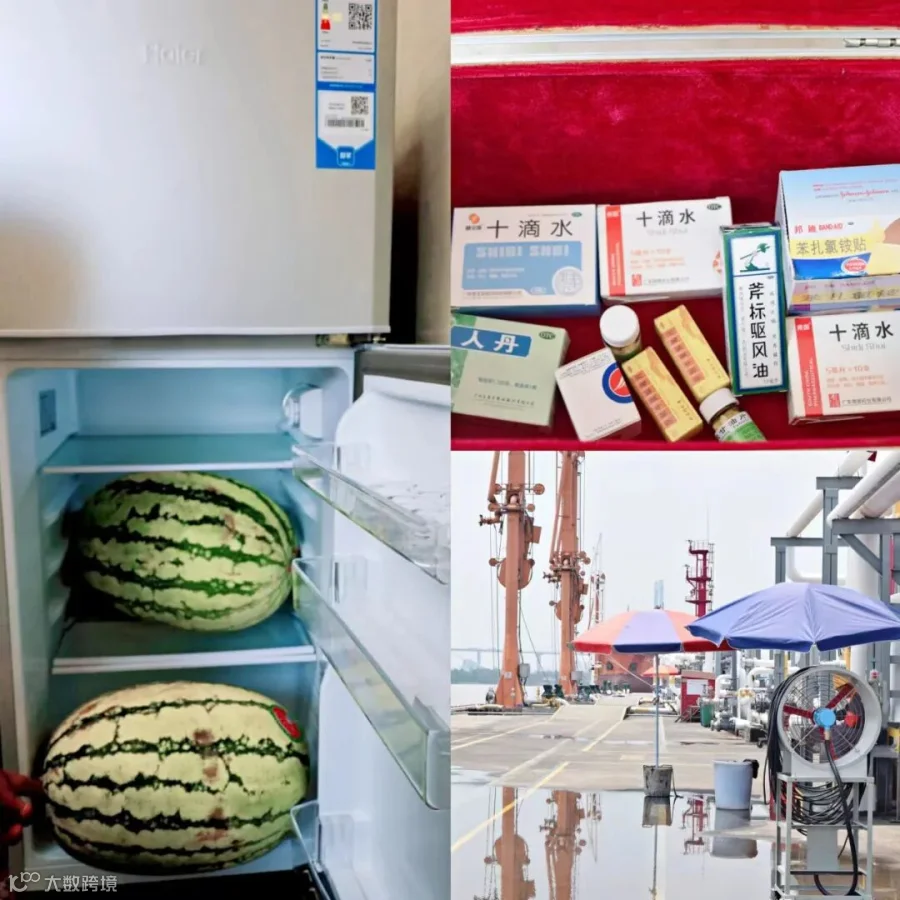 公司为部分候工室配置冰箱,用于储存“冰背心”的冰袋、西瓜等物品,为一线员工防暑降温添置“利器”。公司定期购买冰块,配合“水雾风扇”一同使用,使码头前沿的降温效果更为明显。此外,分公司还在候工室、门岗等地配备了“仁丹”、“十滴水”等防暑降温药品,以各类措施战胜高温,全面保障一线职工身心健康。