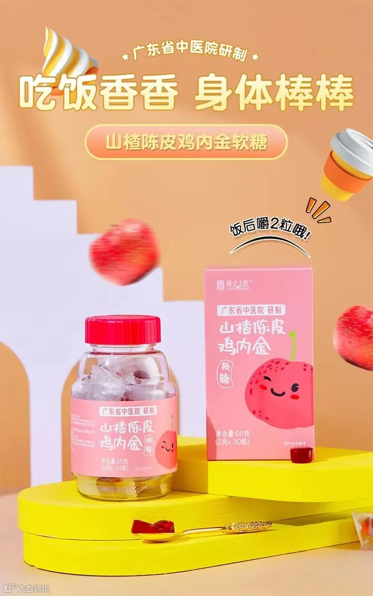 为了造福家长们,康合联合广东省中医院临床营养科联手研制了一种软糖,针对口感、大小反复试验,并考察了多个厂家,最终做出了它——