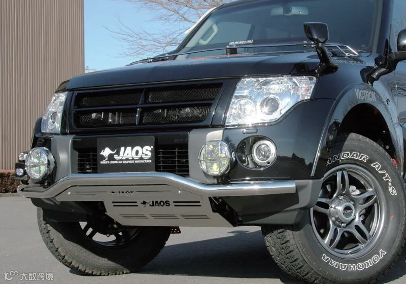 这辆2013款三菱帕杰罗V98W EXCEED,外观上加装了JAOS专属包围套件,前杠造型更硬朗,还带有蓝色辅助灯,强化越野辨识度;轮毂搭配越野胎,提升通过性,整体强化了硬派越野气质,让车辆在保持原厂越野基因基础上,更具户外探险范儿 。