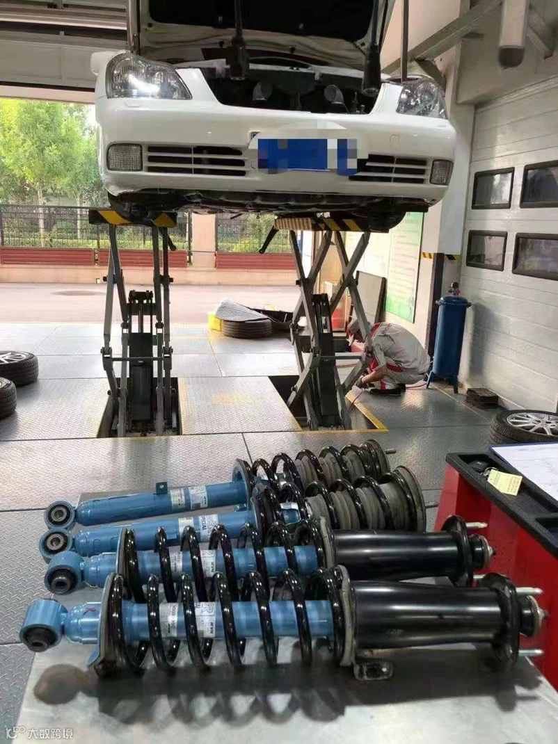 山东东方优速特汽车服务连锁有限公司员工正在安装蓝筒减震器