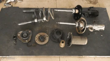 将减震器总成拆散后,将每个部件按原顺序排列,这样可避免之后安装时弄错部件的安装顺序。