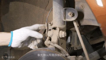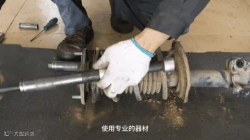 注意使用马凳来承托住整个刹车与悬挂系统才可取下减震器。
