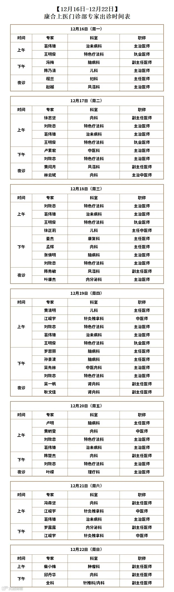 出诊日期:12月19日(周四)上午、12月21日(周六)白天