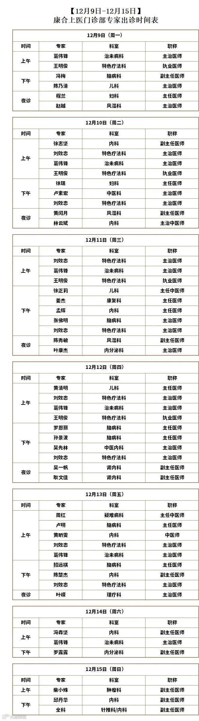 出诊日期:12月10日至12月13日全天(除夜诊)