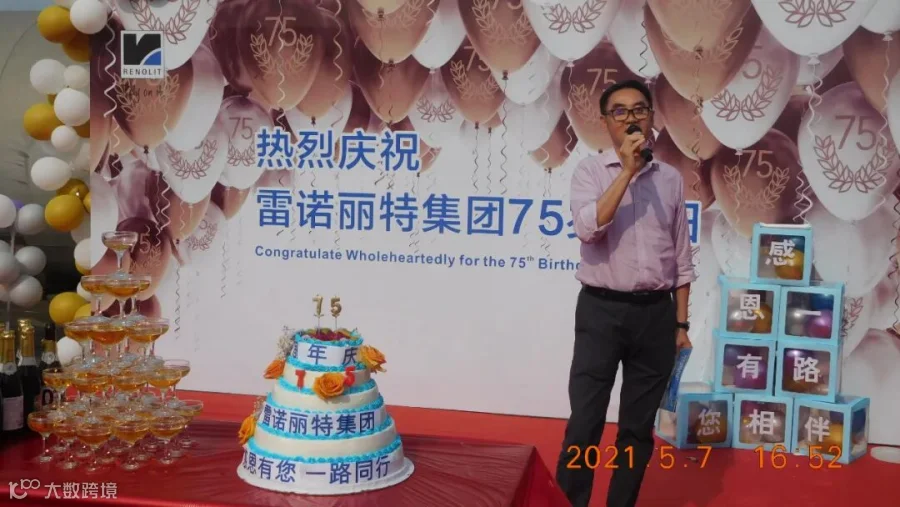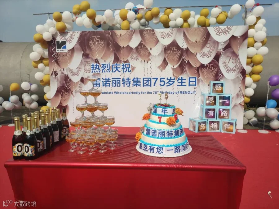 5月7日,广州雷诺丽特塑料有限公司彩球飘飘,红毯铺地,香槟金灿,公司篮球场上立着抢眼又喜庆的“热烈庆祝雷诺丽特集团75岁生日”的幕布,迎来了集团75周年庆祝Party。