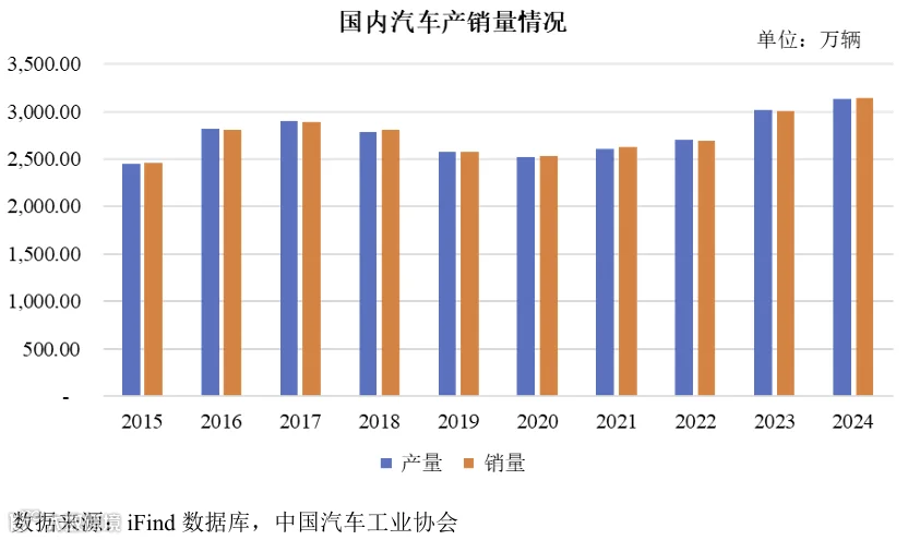 公司发展深度受益于行业发展红利。从整体汽车行业来看,我国汽车产销量连续多年位居全球第一,2023-2024 年连续创下历史新高,2024 年产量达 3128.20 万辆、销量达 3143.60 万辆,居民收入提升、消费升级与城镇化推进将持续驱动行业稳健发展。