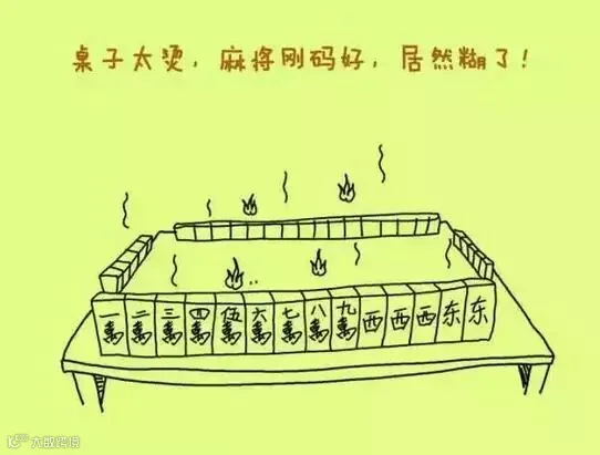 1、桌子太烫,麻将刚摆好,居然糊了