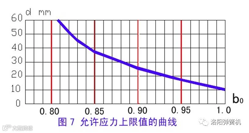 根据钢丝直径d,许用应力上限值的降低曲线(图7)查出系数b0值.