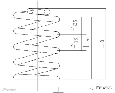 — 预加载荷Fw下的弹簧长度 Lw。 Lw下限值取决于最小 工作高度Ln ,即略大于弹簧并圈长度LB。确定Ln时,应利用钢丝最大直径dmax=d+0.08(上偏差)。此时需要验算缓冲块是否完全被压缩至2H/3(H为缓冲块自由高度);弹簧压缩后的高度不应小于Ln 。