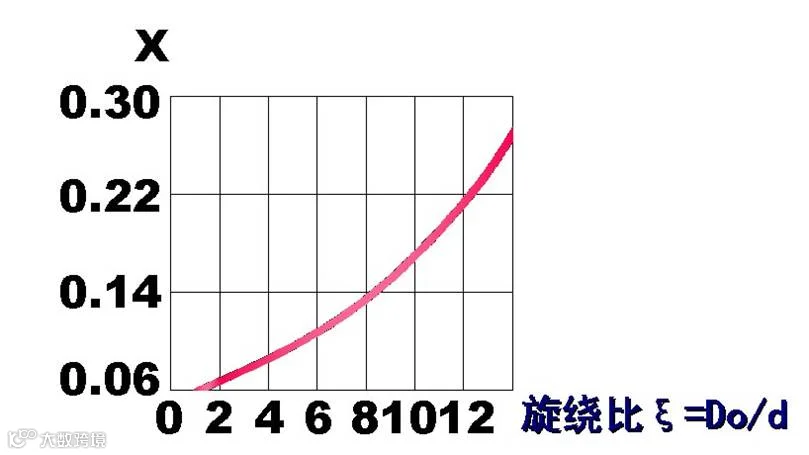 χ 可根据旋绕比ξ=Do/d 由图9中查得。