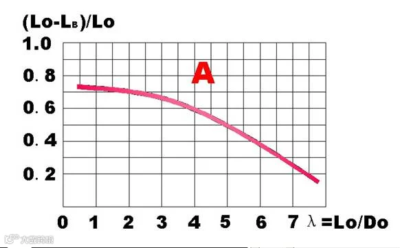 如果按λ值计算出相对变形(L0-LB)/L0的值与图10所查得的值不同且落入A区,就必需增大弹簧中径Do,否则弹簧将发生纵向弯曲,处于不稳定状态。