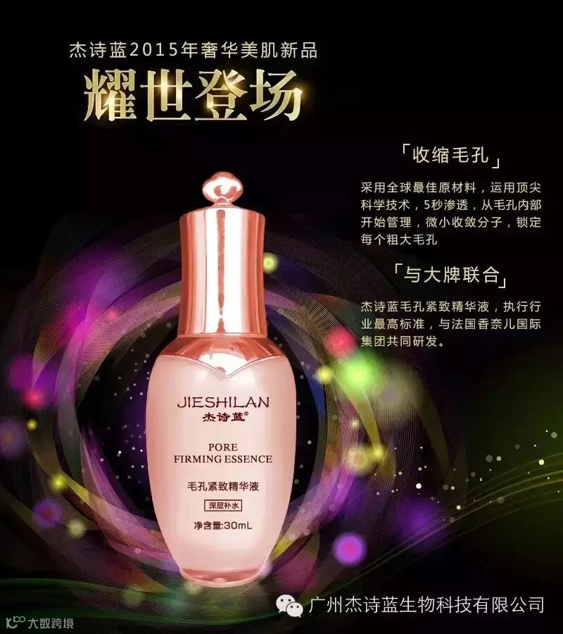 杰诗蓝毛孔紧致精华液,执行行业安全高效最高标准,与法国香奈儿国际集团共同研发,并联合韩国首尔大学生命科学研究院。采用全球最佳原材料,运用顶尖科学技术,5秒渗透,从毛孔内部开始管理,微小收敛分子,锁定每个粗大毛孔,提升胶原蛋白合成速度,7天见效,彻底消灭肌肤“杀手”,由表及里恢复肌肤弹性紧致,细腻柔滑触手可得。