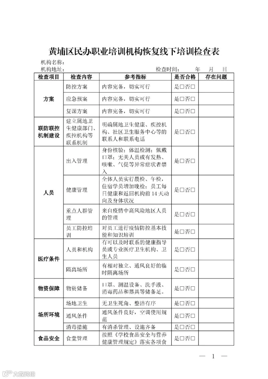 2.黄埔区民办职业培训机构恢复线下培训检查表
